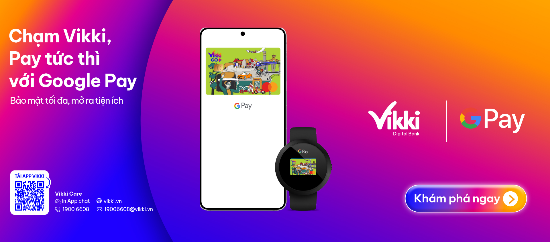 Không cần ví, không cần thẻ vật lý – chỉ một chạm với điện thoại hoặc đồng hồ thông minh, khách hàng Vikki đã có thể thanh toán tức thì, an toàn và liền mạch cùng Google Pay.