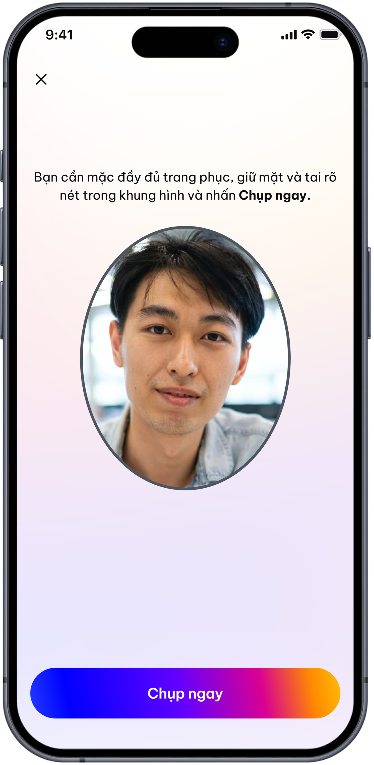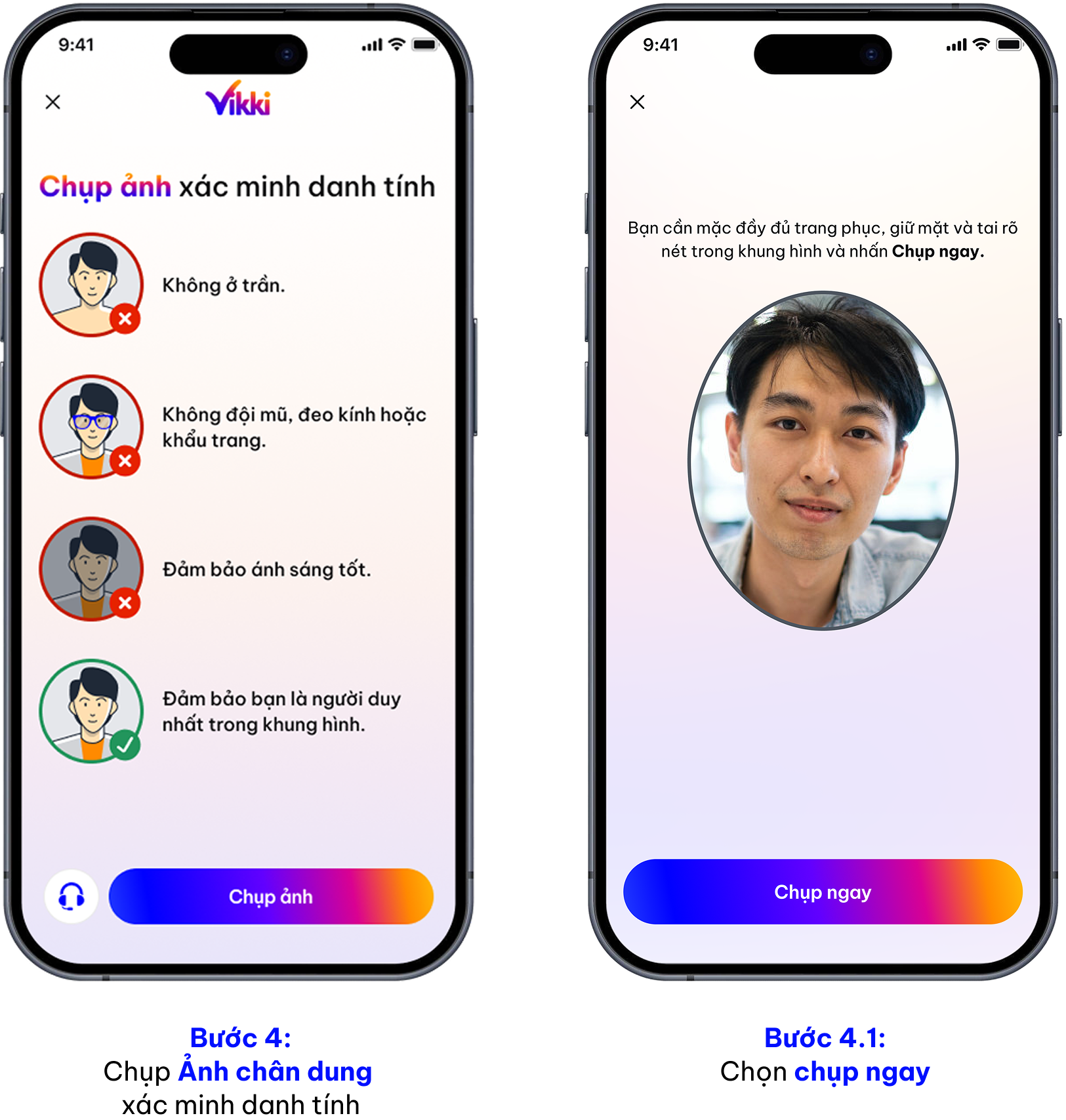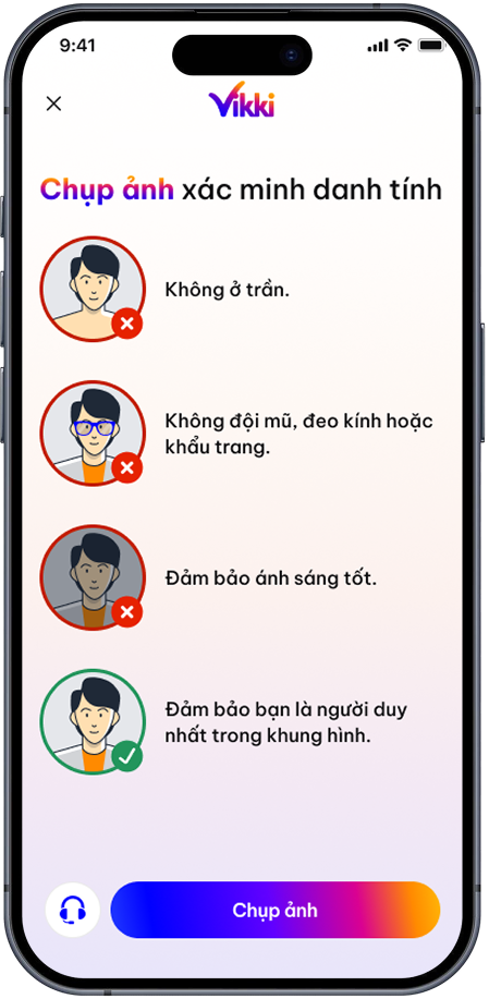 - Chụp ảnh chân dung xác minh danh tính.