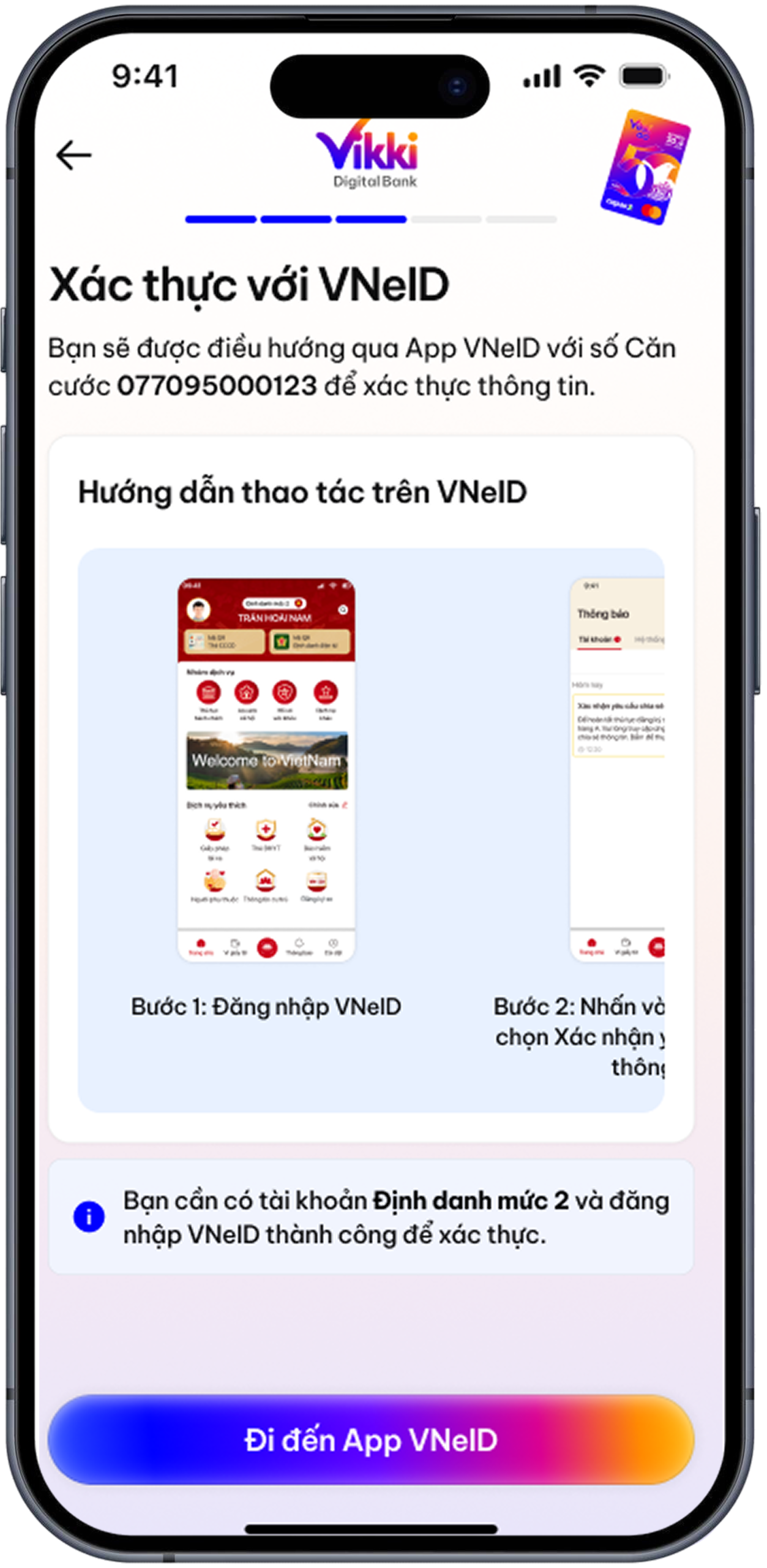 Bấm Đi đến App VNeID để mở app & xác thực trên VNeID theo hướng dẫn
