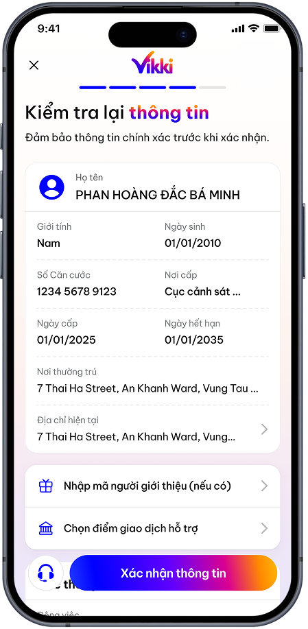Cách 1: Mở trên App Vikki bằng Căn cước công dân (CCCD)