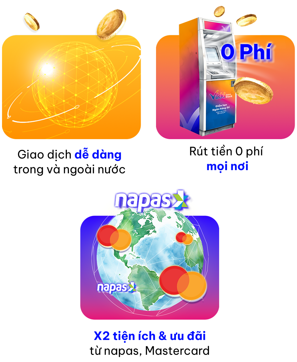 • Phí chuyển tiền liên ngân hàng, thanh toán QR hoặc nạp điện thoại: theo quy định Vikki Bank ban hành từng thời kỳ.