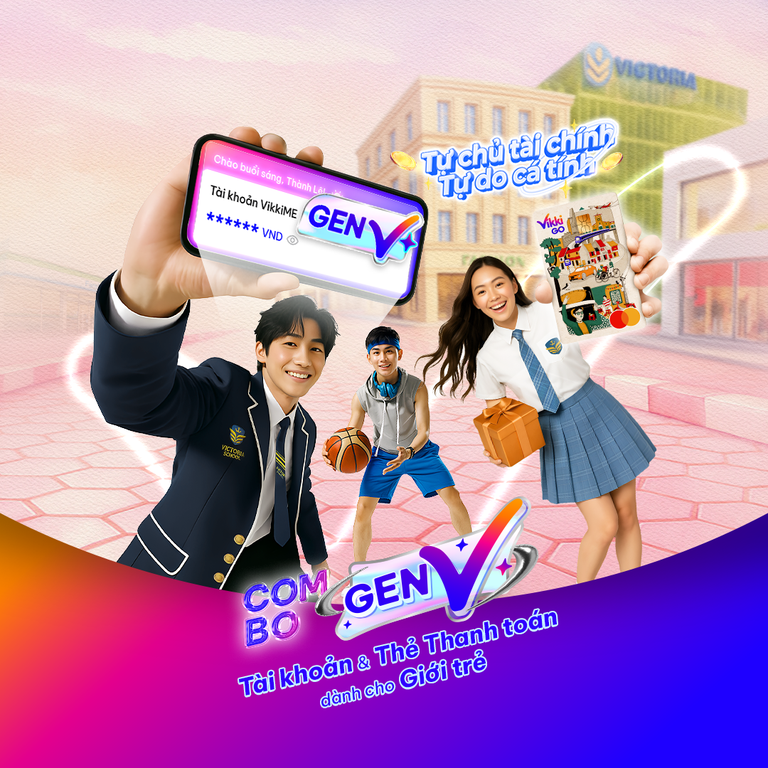 – Tài khoản VikkiME GenV là tài khoản thanh toán trực tuyến được thiết kế riêng cho khách hàng từ đủ 15 tuổi đến dưới 18 tuổi.