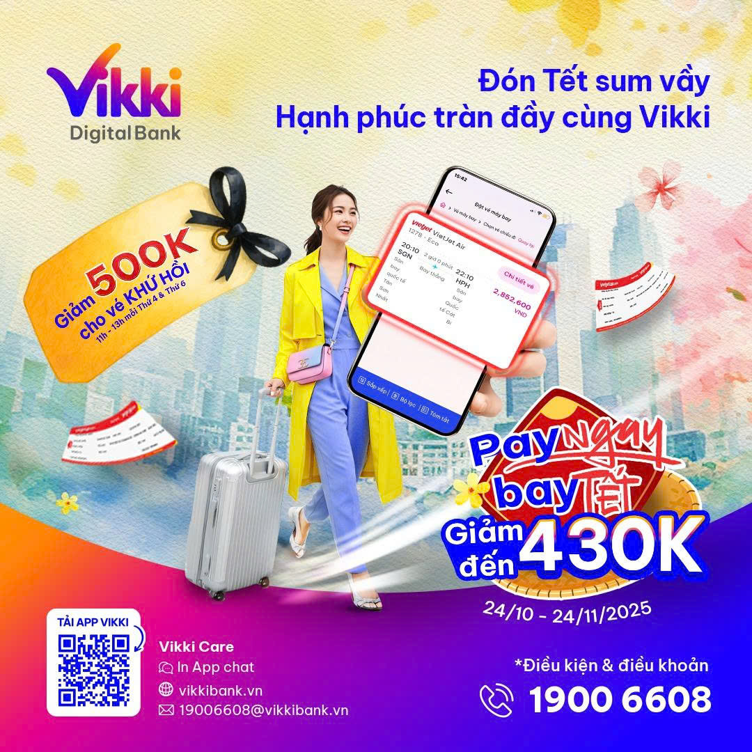 Tết này, thay vì đau đầu canh vé, bạn chỉ việc mở app Vikki là có thể “chốt” ngay chuyến bay về sum vầy. Mọi thứ trở nên nhẹ nhàng, nhanh gọn và quan trọng nhất là… siêu tiết kiệm. Để những ngày đầu năm của bạn không chỉ trọn vẹn mà còn đầy ắp niềm vui từ chính hành trình trở về nhà.
