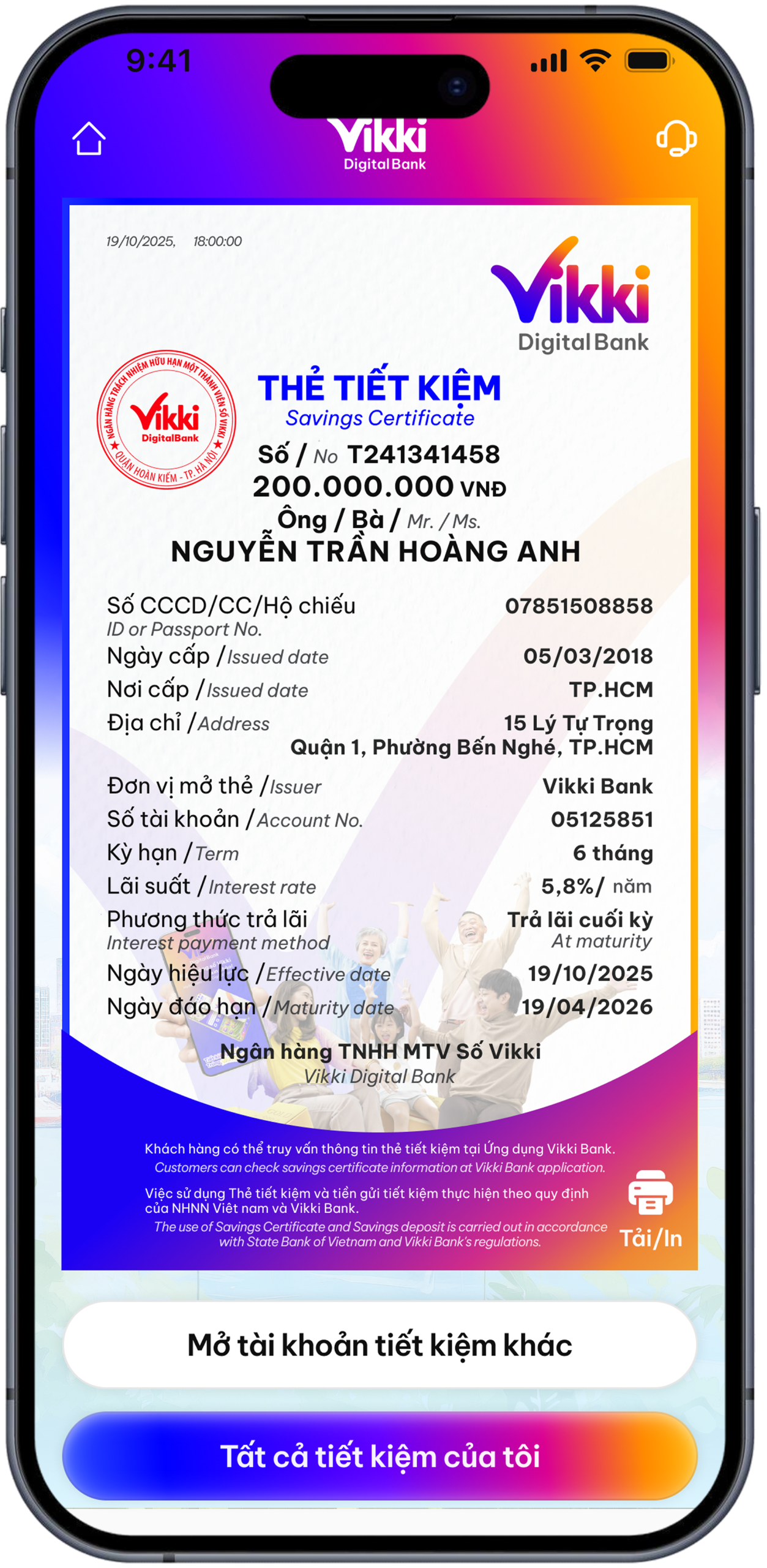 Mở thành công Thẻ Tiết kiệm Online trên App Vikki trong thời gian diễn ra chương trình.