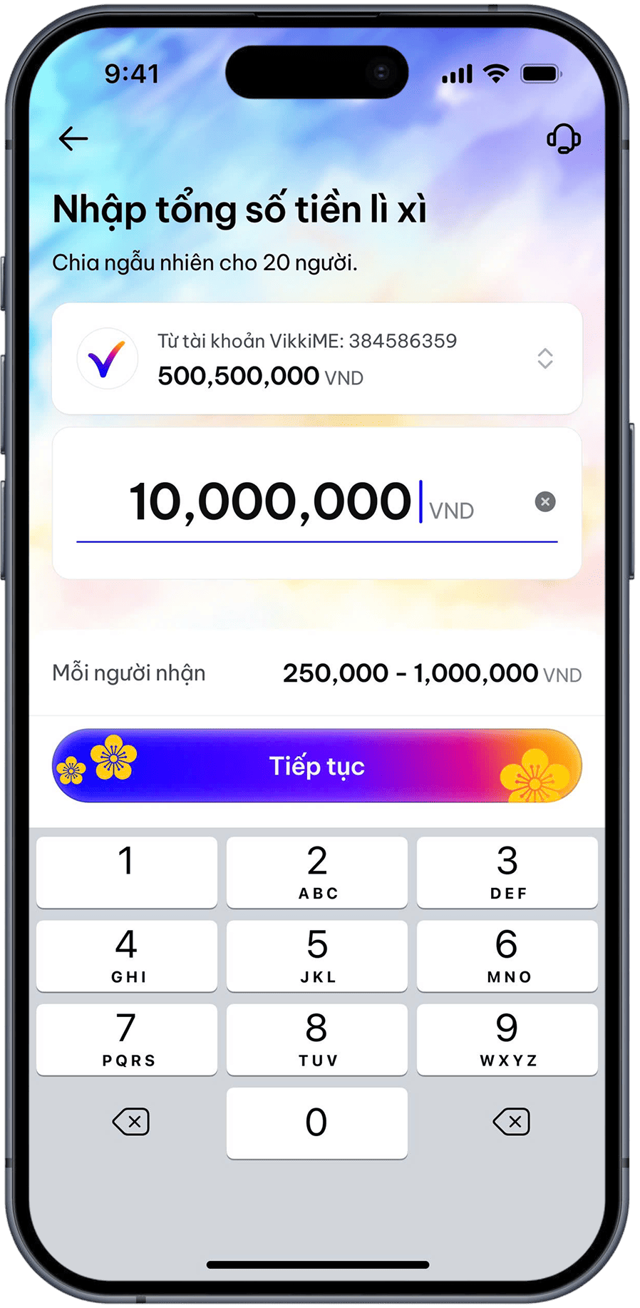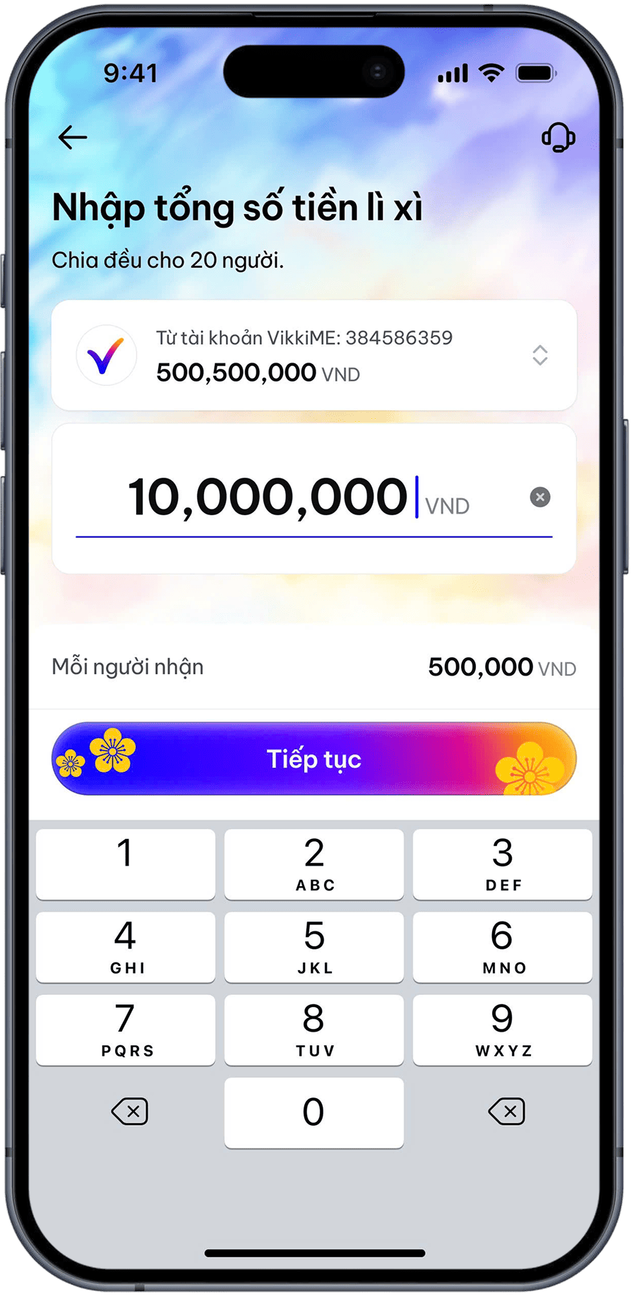 Nhập số tiền bạn muốn Lì Xì chia đều