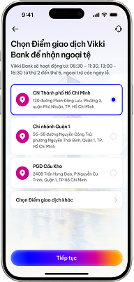 - Bước 6: Chọn Điểm giao dịch Vikki Bank mà bạn có thể đến để nhận ngoại tệ.