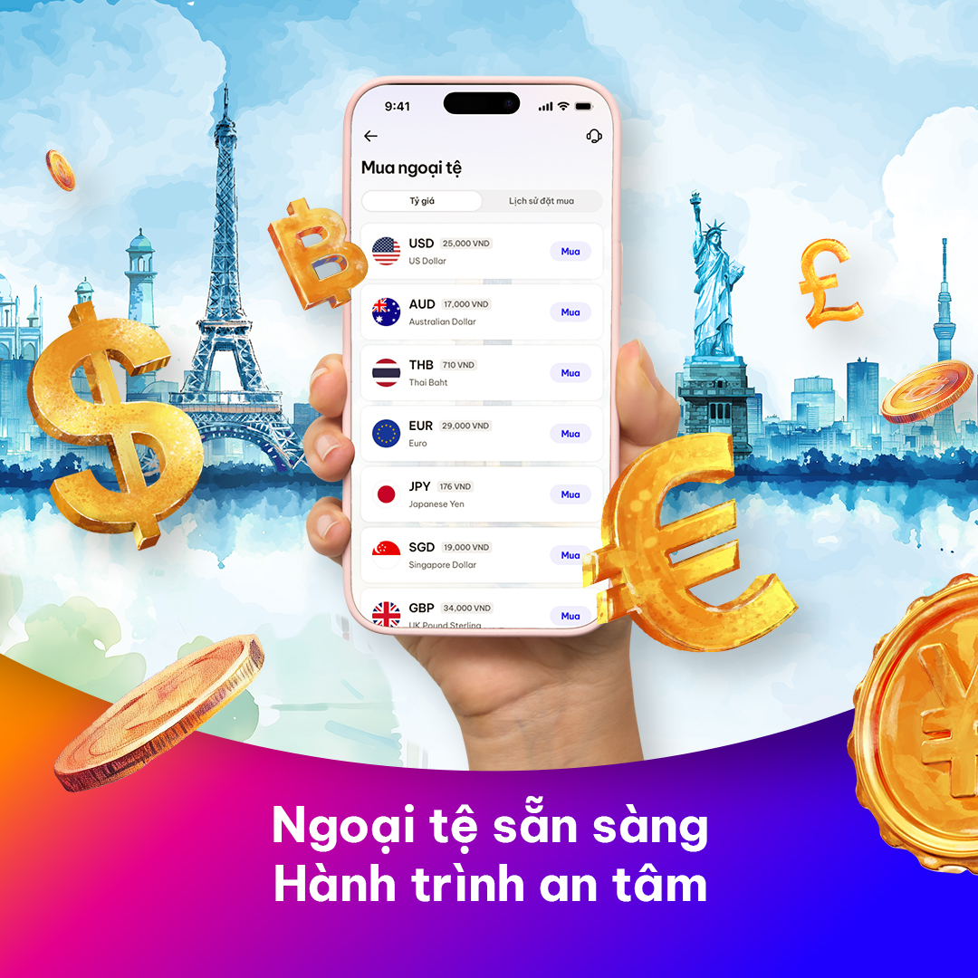 Danh sách các ngoại tệ cho phép áp dụng là: USD, AUD, THB, EUR, JPY, SGD, GBP, CAD