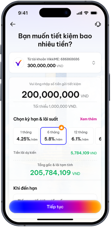 Cộng đến 0,5%/năm khi Tiết kiệm Online trên App Vikki