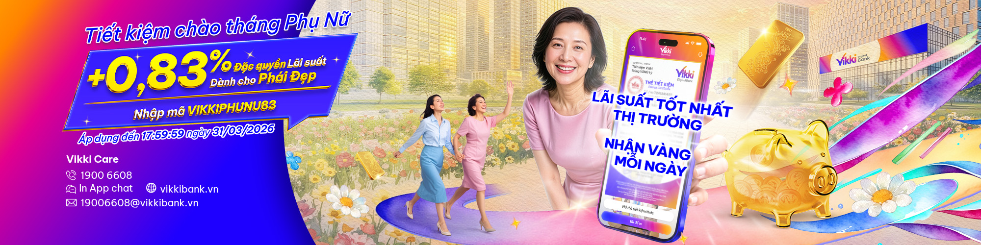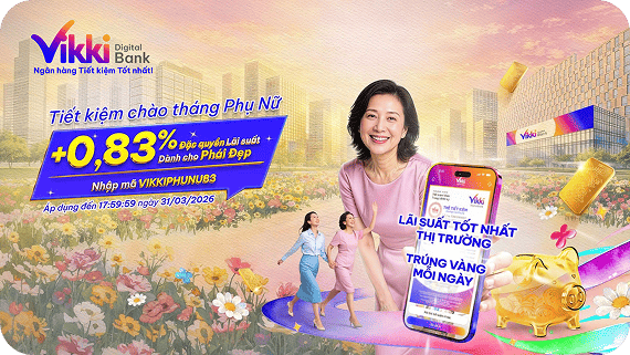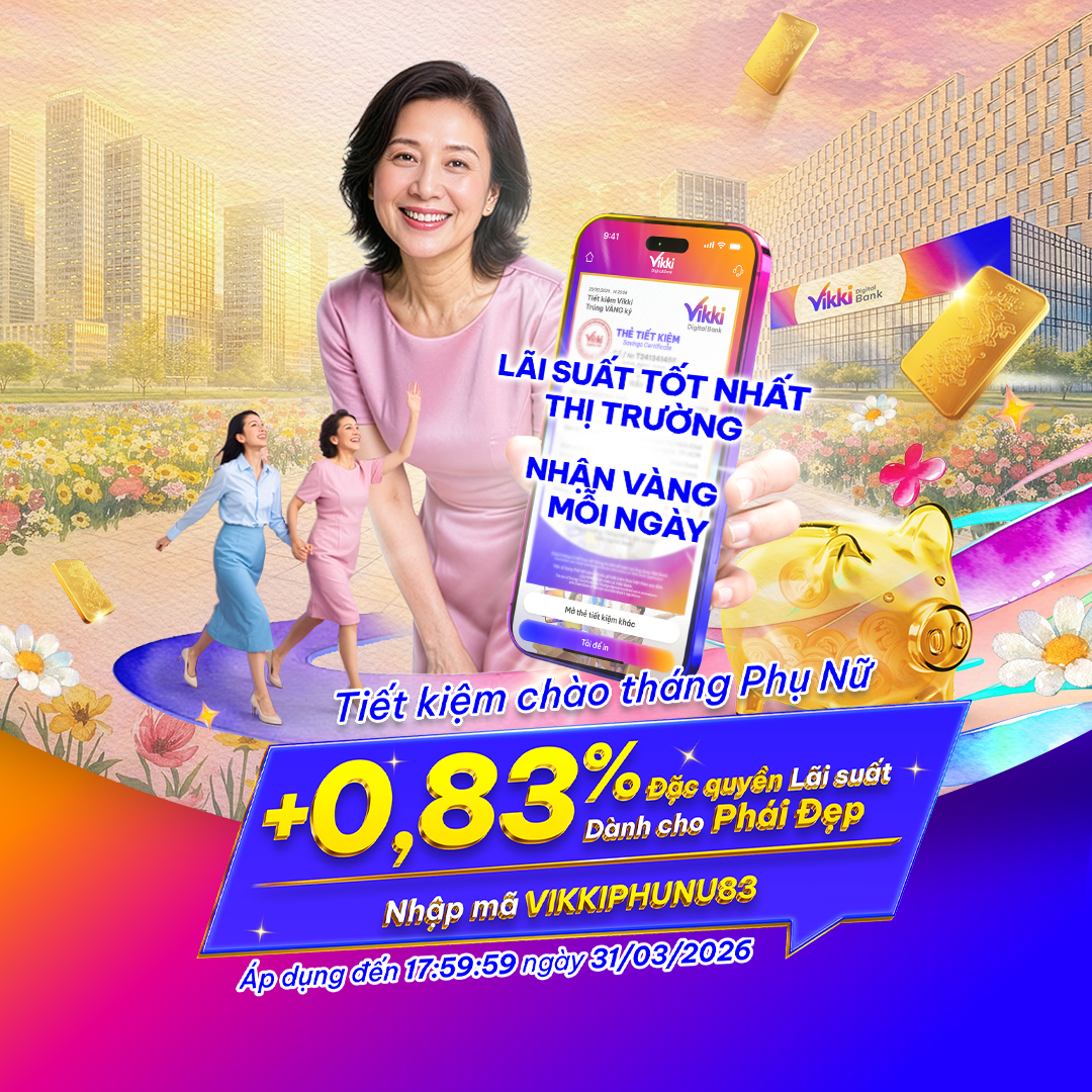 Cộng 0,83%/năm dành riêng cho Khách hàng Nữ khi gửi Tiết kiệm Online/ Điểm giao dịch từ 05 triệu đồng & kỳ hạn từ 06 tháng