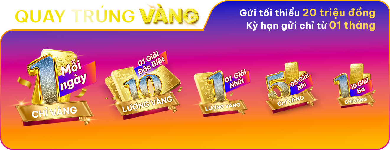 Tới hết ngày 10/02/2026, khách hàng chỉ cần gửi từ 20 triệu đồng trở lên, trên App Vikki hoặc trực tiếp tại 212 điểm giao dịch, sẽ có cơ nhận quà vàng mỗi ngày, trúng vàng mỗi tuần, mỗi tháng và phần thưởng lớn nhất lên tới 10 lượng vàng cùng với những ưu đãi hấp dẫn từ Vikki – Ngân hàng Tiết kiệm Tốt nhất thời điểm hiện tại.