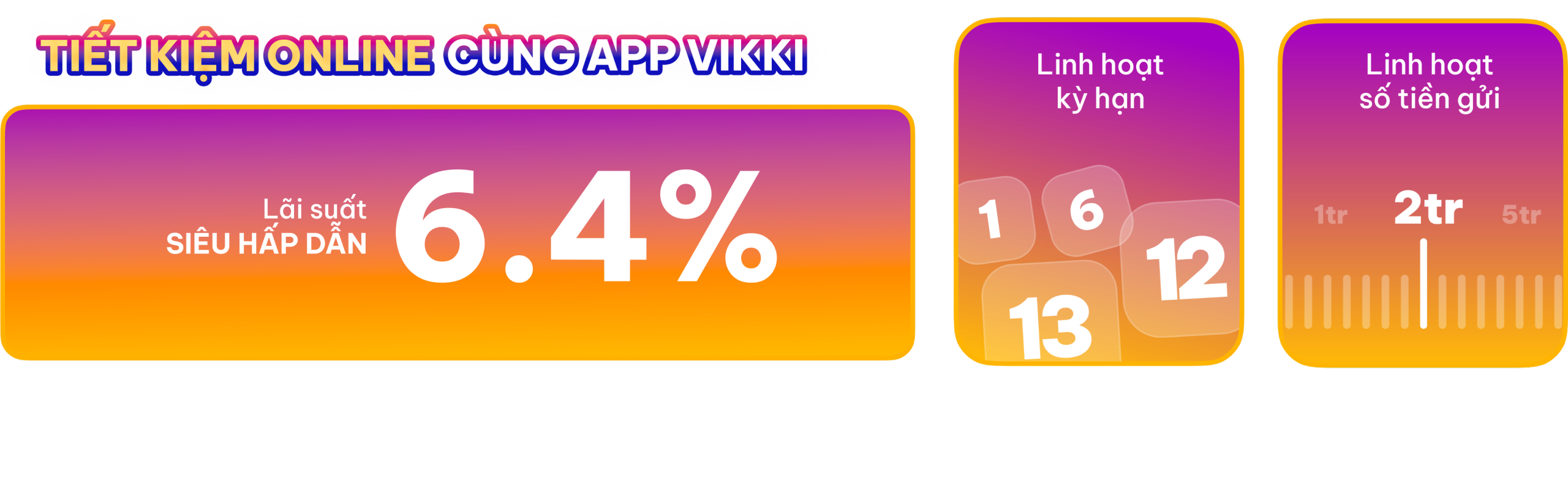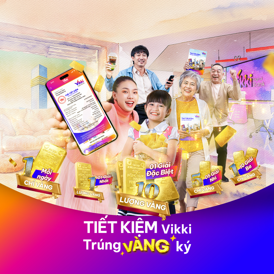 Sau sự thành công của mùa 1 với hơn 100.000 giải thưởng đã được trao, chương trình “TIẾT KIỆM Vikki – Trúng VÀNG ký” của Ngân hàng Số Vikki sẽ tiếp tục mùa thứ 2 với những ưu đãi chưa từng có. Đây là chương trình tiết kiệm dự thưởng lớn nhất trong năm với giải thưởng đặc biệt lên tới 1 ký vàng (10 lượng) dành cho khách hàng may mắn nhất.