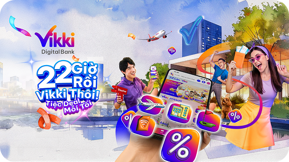 Từ nay, mỗi tối 22H Vikki mang nhiều ưu đãi đến 460K* khi Khách hàng đặt vé máy bay, đặt phòng khách sạn, đặt sân golf hay nạp Data trên App Vikki