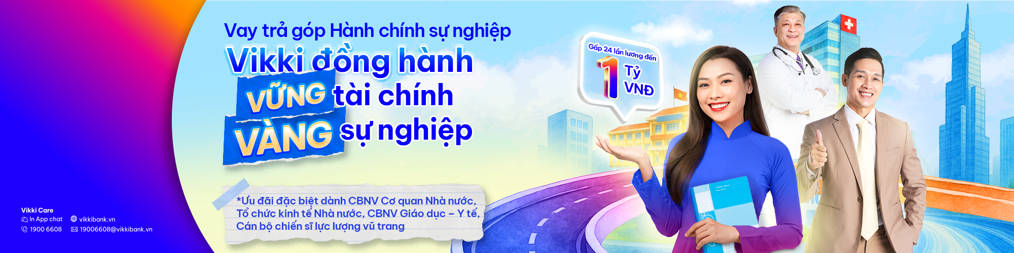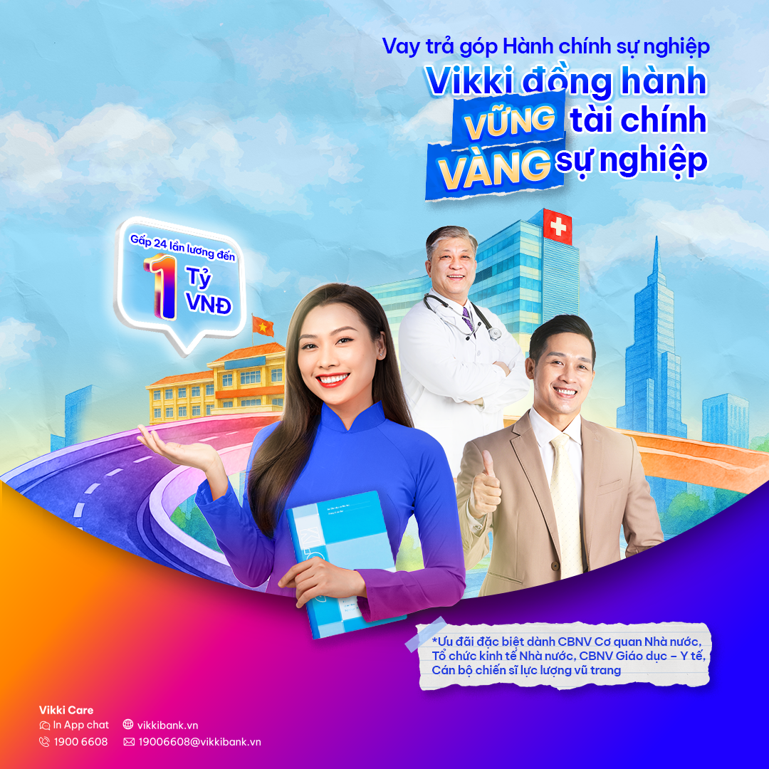 Vikki thấu hiểu và trân trọng những đóng góp của Cán bộ, Công chức, Viên chức và những người đang cống hiến trong các ngành Giáo dục, Y tế, Lực lượng vũ trang. Với sản phẩm Vay trả góp dành riêng cho CBNV Nhà nước và các ngành nghề ưu tiên, Vikki mang đến giải pháp tài chính linh hoạt – ưu đãi – an tâm, giúp khách hàng vững vàng tài chính, yên tâm phát triển sự nghiệp và cuộc sống.
