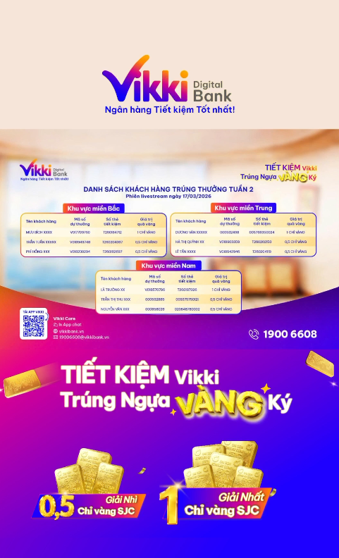 Theo thể lệ chương trình, từ nay đến hết ngày 30/06/2026, khách hàng gửi tiết kiệm từ 20 triệu đồng trở lên trên ứng dụng Vikki hoặc tại hệ thống 212 điểm giao dịch toàn quốc sẽ nhận mã dự thưởng tham gia chuỗi quay số hấp dẫn với nhiều phần quà giá trị. Bên cạnh các giải thưởng trao định kỳ theo ngày, tuần và tháng, chương trình còn mang đến Giải Đặc biệt trị giá 10 lượng vàng SJC, dành cho khách hàng may mắn nhất vào cuối chương trình.