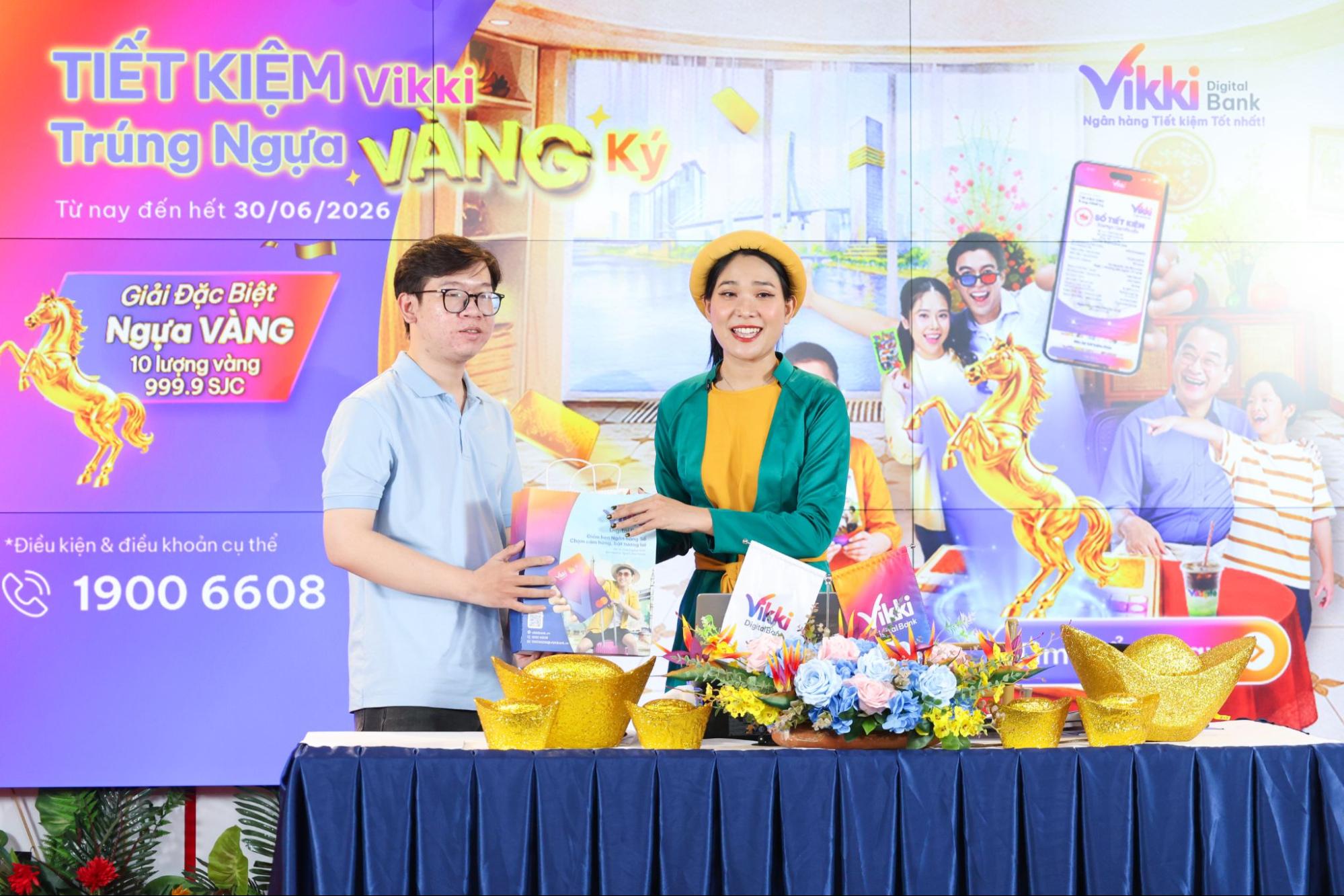 Chương trình “TIẾT KIỆM Vikki – Trúng Ngựa VÀNG Ký” diễn ra đến hết ngày 30/06/2026. Khách hàng có thể tham gia ngay trên ứng dụng Vikki Bank, website www.vikkibank.vn hoặc liên hệ hotline 1900 6608 để được tư vấn chi tiết thể lệ và cách thức tham gia.