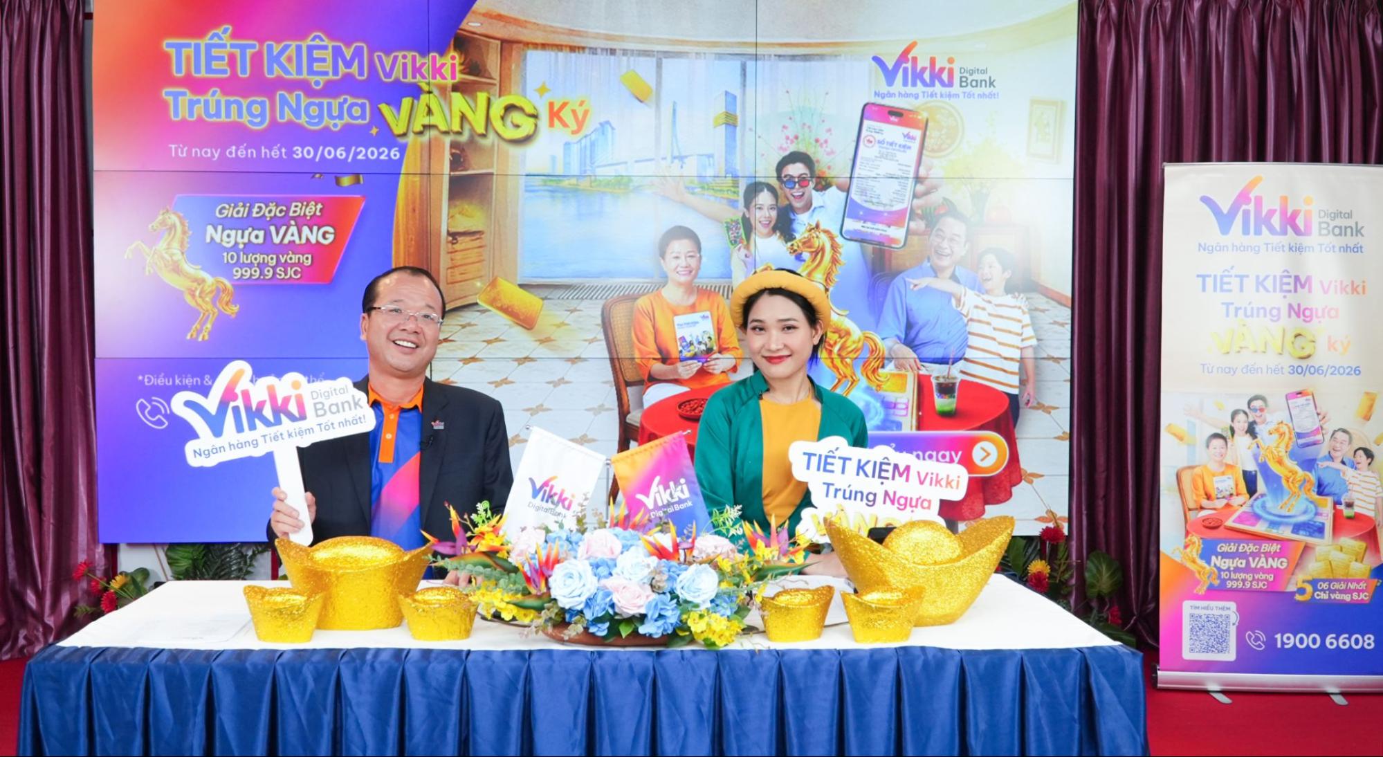 Chương trình “TIẾT KIỆM Vikki – Trúng Ngựa VÀNG Ký” diễn ra đến hết ngày 30/06/2026. Khách hàng có thể tham gia ngay trên ứng dụng Vikki Bank, website www.vikkibank.vn hoặc liên hệ hotline 1900 6608 để được tư vấn chi tiết thể lệ và cách thức tham gia.