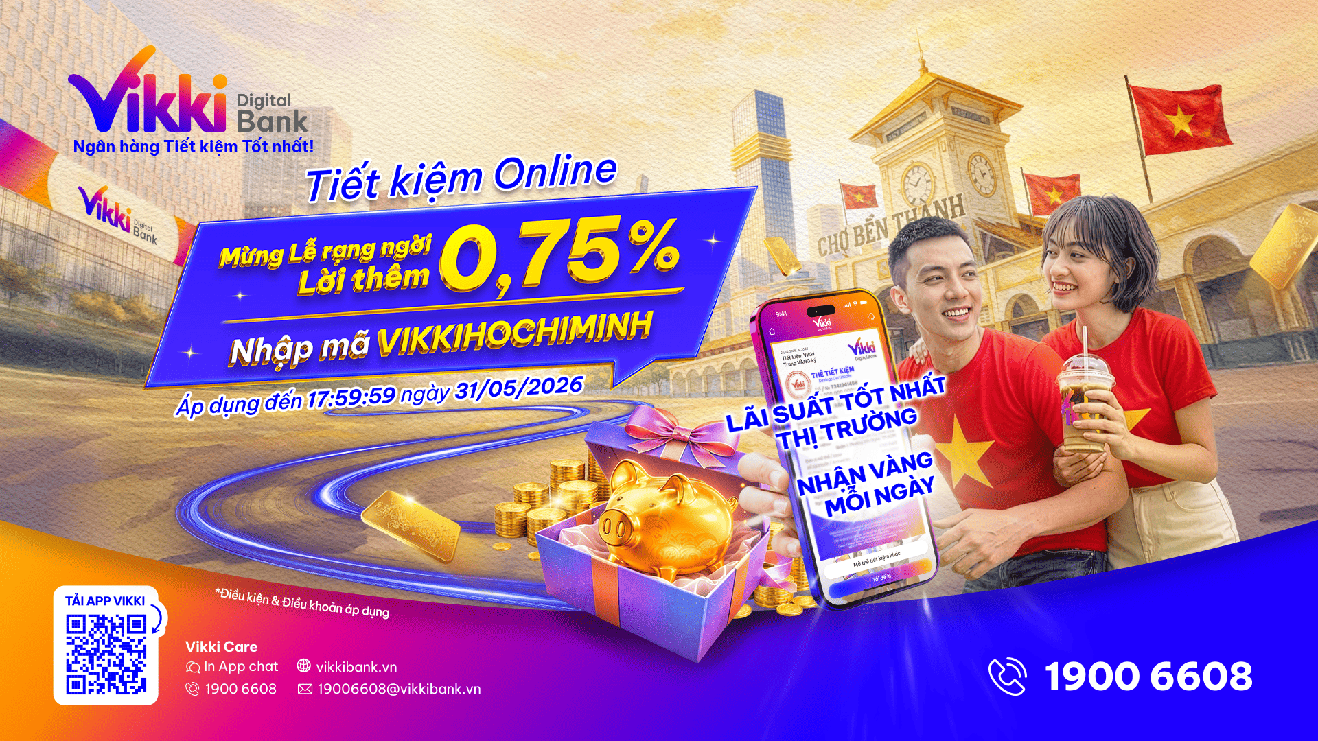 Vikki Bank tung ưu đãi “Mừng Lễ rạng ngời – Lời thêm 0,75%”, vừa có cơ hội trúng 10 lượng vàng SJC