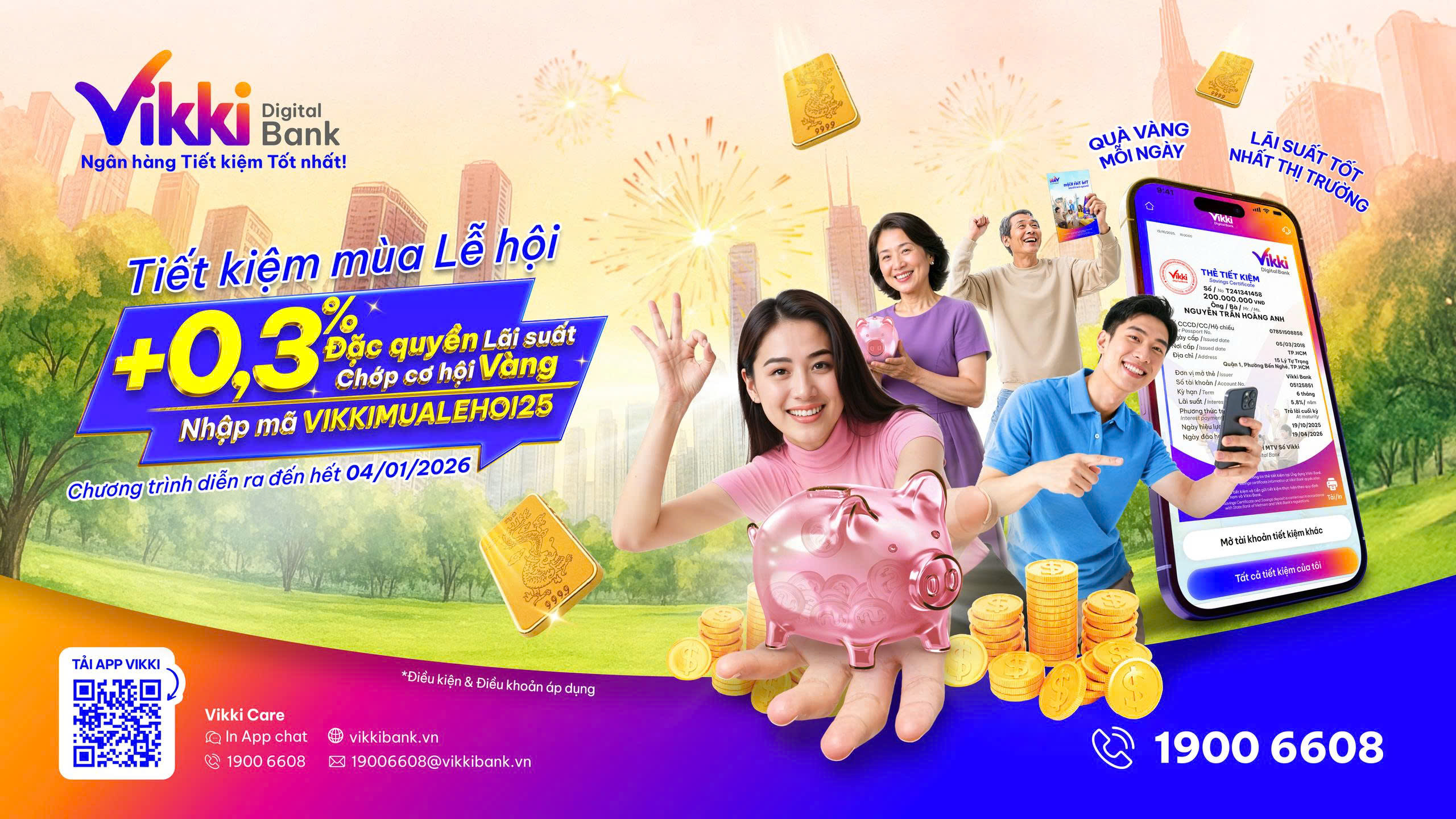 Vikki ra mắt ưu đãi Tiết kiệm Mùa Lễ Hội: Cộng thêm 0,3% lãi suất, mở rộng tiện ích du lịch – tiêu dùng cuối năm